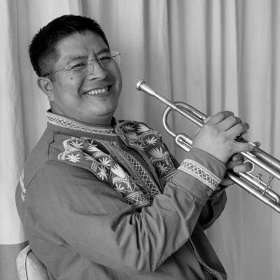 Mixe musician from Santa María Tlahuitoltepec, Mixe, Oaxaca. Around 1992 he undertook his musical training, specialising in the trumpet, in a community context at the Centre for Developing and Education in Mixe Culture (CECAM). He continued to work on his musical skills at the Puerto de Veracruz School of Art, as well as at the Ollin Yoliztli’s Vida y Movimiento Music School and, later, at the UNAM School of Music. In 2008 he founded the Kamaapyë Brass Quintet project with prominent musicians from Tlahuitoltepec, reinterpreting traditional Ayuujk music in a chamber music format. In 2012, he founded Kalok iiy / fandango ayuujk, which recreates Mixe music as a collective manifestation in urban contexts, bearing in mind that the power of fiesta unites; this group has played at festivals around Mexico. In 2014 he created the Kumantuk Xuxpë audiovisual project, a musical exploration that incorporates the oral tradition of the Mixe people, elements of traditional Mixe music in dialogue with electronic music and graphic arts. As a result of this exploration, Kumantuk Xuxpë produced its first, self-titled, album in 2019. Benjamín has collaborated on other musical and visual arts projects such as the Clorofila project, as part of which he has appeared at various national and European venues. Benjamín is also a promoter of intercultural musical exchange among different traditions and promotes the artistic manifestations of the Mixe people in Mexico City.